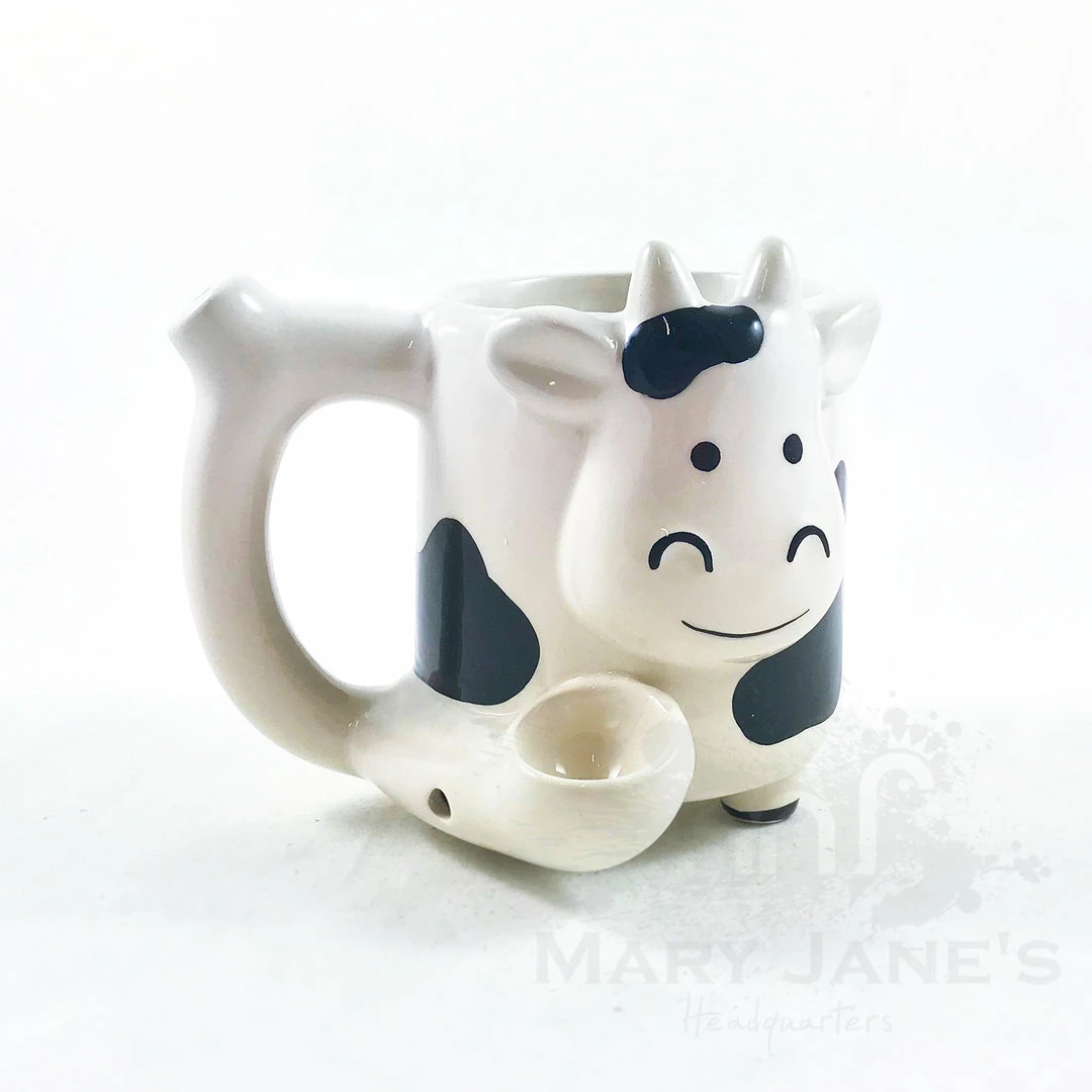 Mooo the morning away having a sip of tea or coffee whilst also having a puff out of this ceramic cow pipe mug!
