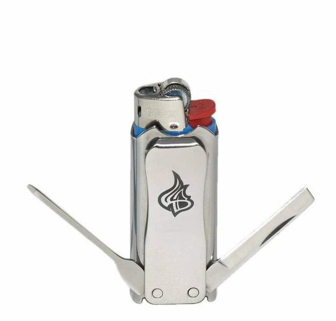 LighterBroยฎ Mirco multi-tool features everything you love about the Classic LighterBro except shrunk down to a fraction of the size and weight. The Micro fits around a mini Bicยฎ Lighter and features:ย KNIFE, POKER, MICRO-FLATHEAD SCREWDRIVER, BOTTLE OPENER, KEYRING, LANYARD ATTACHMENT, 1/4โณ DRIVE SOCKET.