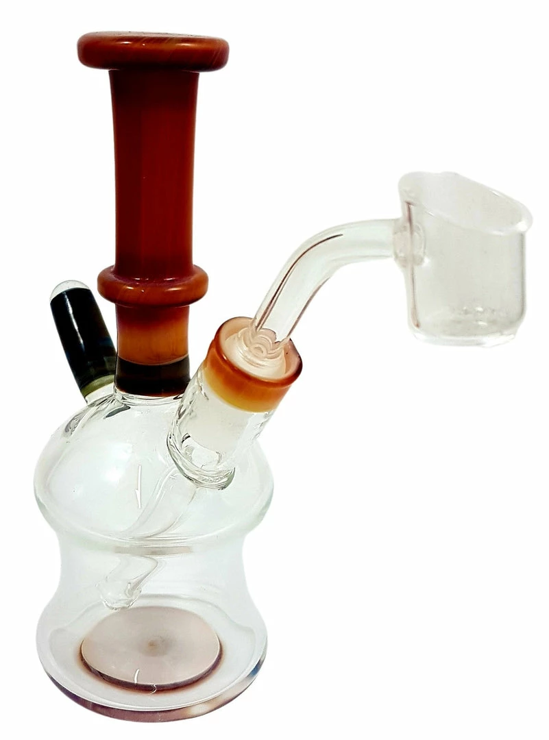 This piece is similar to the other T.H.C. Glassworks rigs though is somewhat more simplistic while also featuring beautiful colored line work. This rig features a 14mmΒ 45 degree female joint.