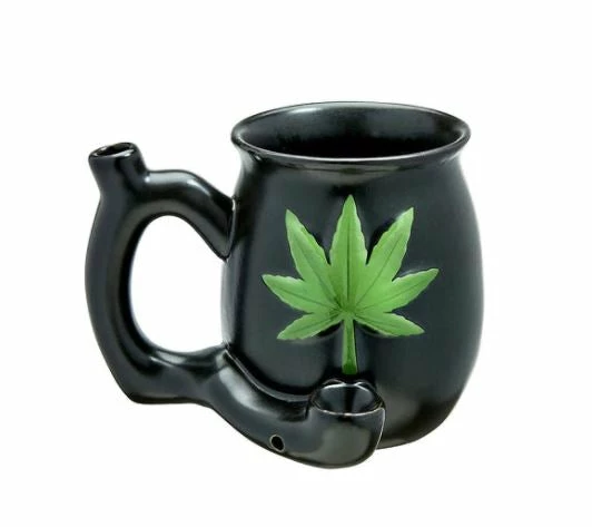 Attached to the front of the mug is a pipe where you can pack your bowl and light it. The smoke filters up the hollow handle to the mouthpiece on the top, allowing you to enjoy a smoke with your steaming coffee. It is microwave and dishwasher safe and comes packaged in a gift box. This product is recommended for adult use only.