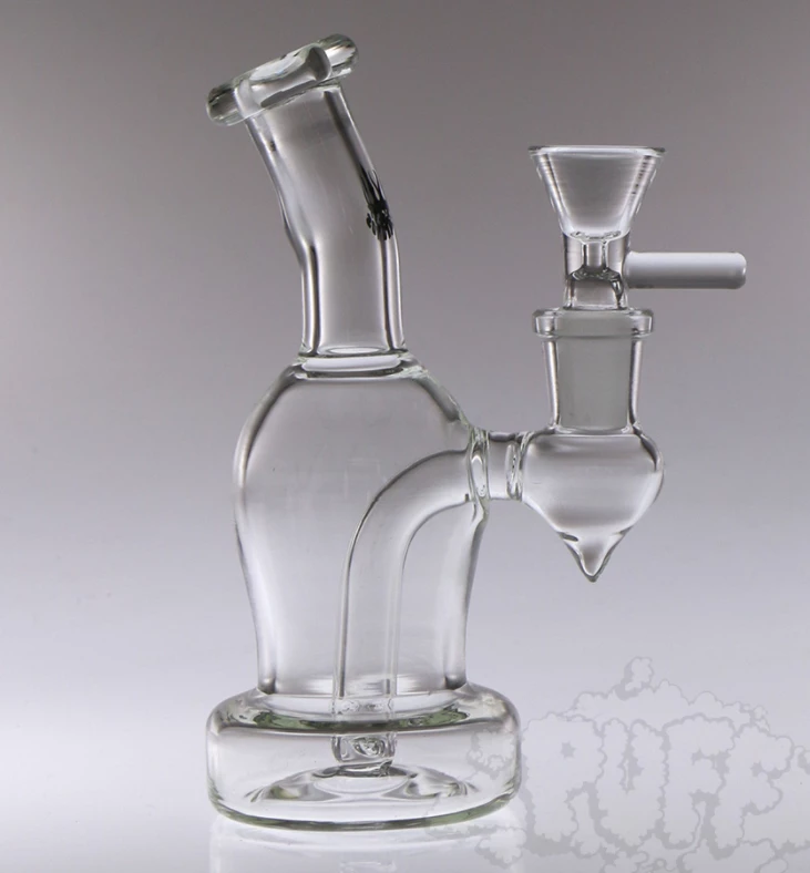 These clear 5″ tall mini dab rigs from Hydros come with a 14mm male dry herb bowl.