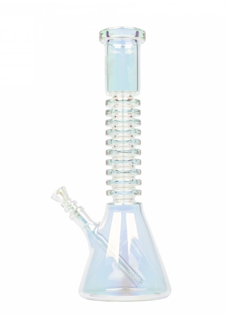 Typically pipes are reinforced at joint sections with marias, and this beaker bong takes it to the edge and back with ten heavy solid square maries in the neck that adds durability, and look kick ass.
