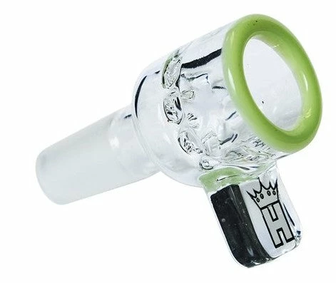 Screen Bowl with Color Accents.ย This large bowl with built-in glass screen is a beautiful addition to any bong.ย The thick rectangular tab has a cool platinum crown label.ย It has vibrant color accents that give it a nice aesthetic. The tab works well to protect fingers from touchingย the bowl when its hot.