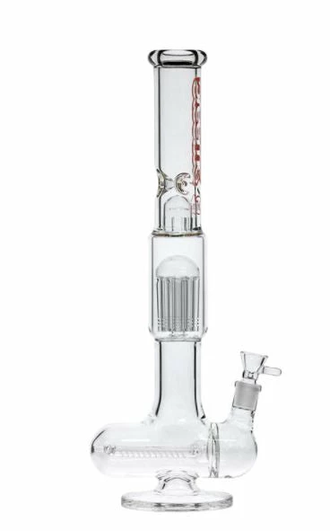 Tall dome over 8-arm tree and triple inline percolators. Clear borosilicate glass with a range of logo color options.