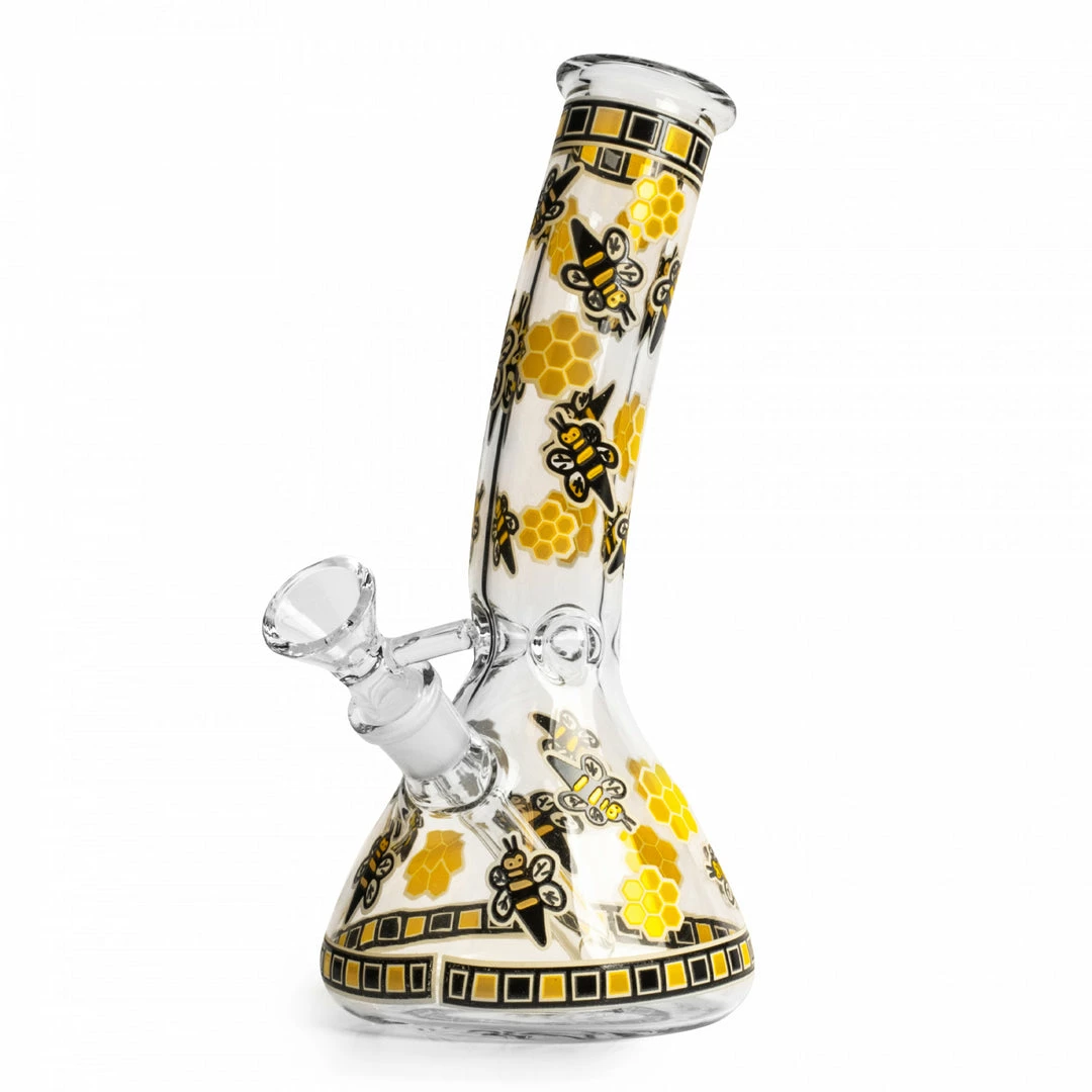 Looking for a buzz? The Yellow Hive Lean Back Beaker Tube is ready to bee your go-to water pipe for all occasions. Lean back and enjoy a built-in ice catcher made of durable 100% borosilicate glass. This bong is money, honey!