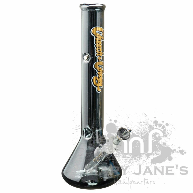 ANYWAYS, these 14″ tall beaker bongers from Cheech & Chong Glass feature complete glass-on-glass connections and even sport a built-in magnet to help you keep track of your lighter!