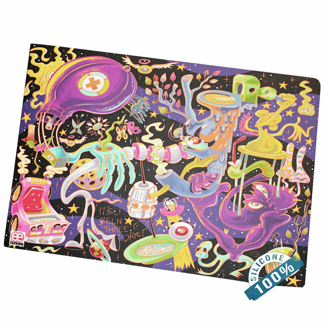 A smoking room isn’t complete without a Dunkees dab mat. The large surface area is perfect for rolling, dabbing, protecting your glass and putting a big smile on your and your friends faces. Each mat measures 11” x 17” and is made of 1/8″ thick of high quality 100% silicone, which means nothing will stick to it, it’s heat resistant and you can clean it to look new with alcohol.