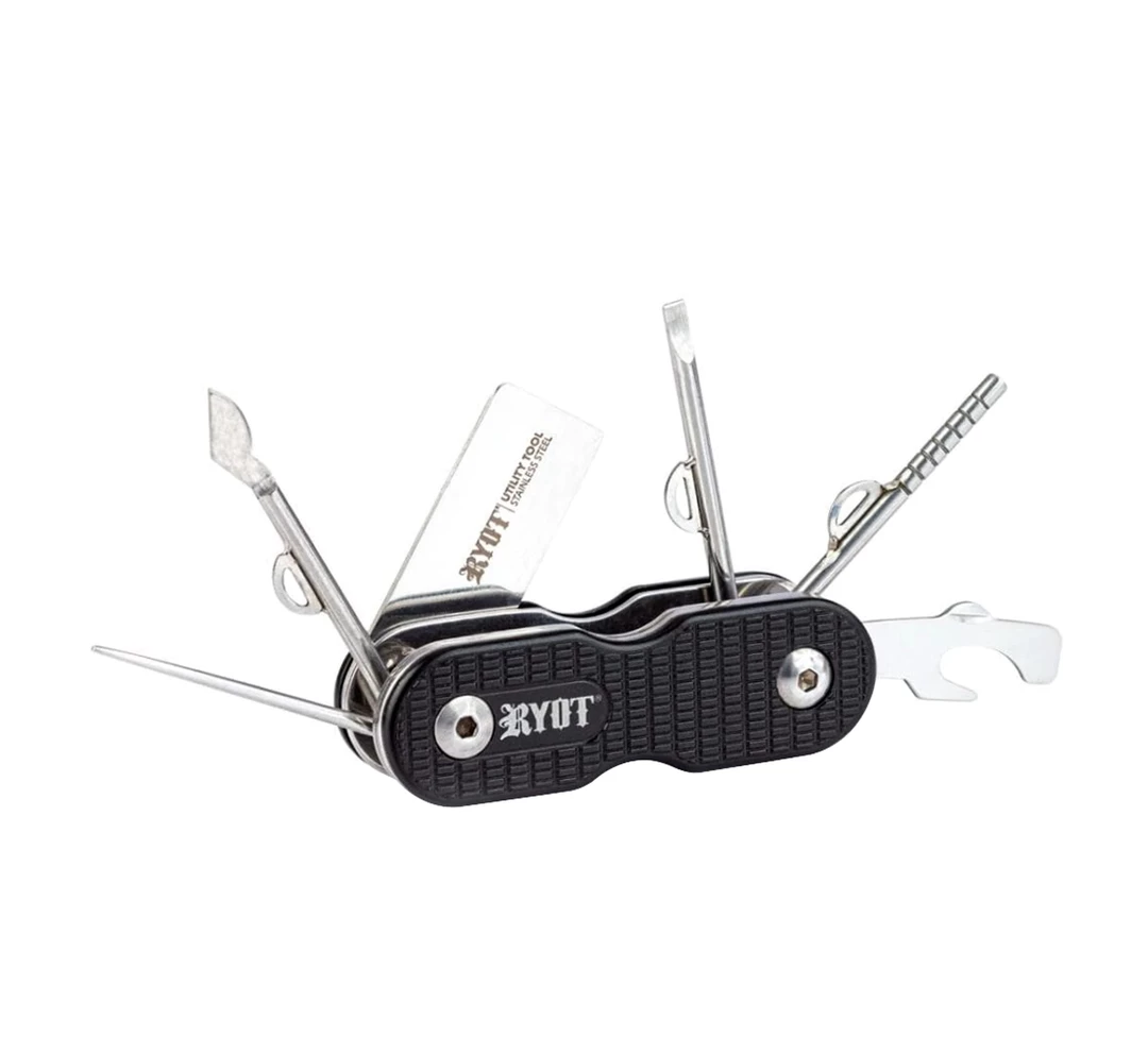 The new and improved RYOT Utility Tool V2! Whether it be poking, scraping, tamping, cutting, or even popping the cap off your favourite beverage, having the right tool for the job makes all the difference. The RYOT Utility V2 tools sleek stainless steel construction is guaranteed to provide a long useful life. Plus, it is so lightweight that you can easily carry it around in your pocket.