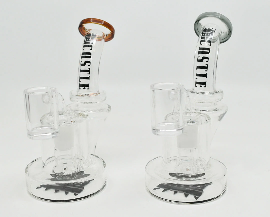 These 6″ Recycler Dab Rigs from Castle Glass come with Castle Glassworks signature thick bottom bangers and one of the most portable recyclers you can find, size-wise.