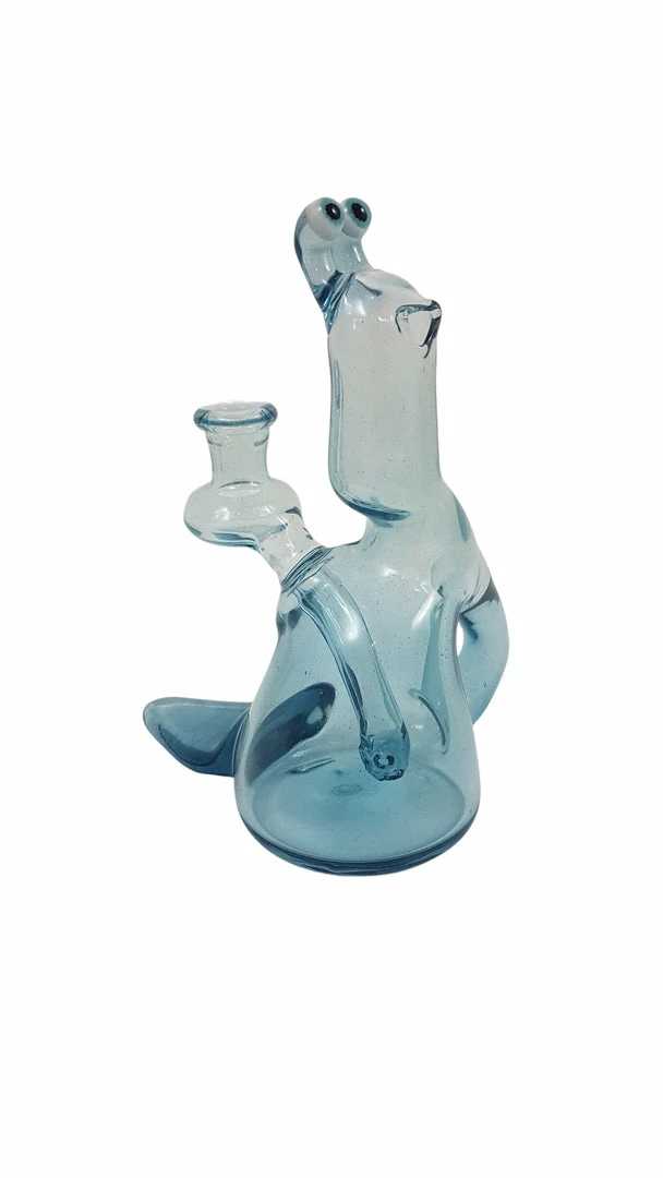 Embrace the slime! This beautiful Blue “Slugcycler” from Browski Glass hits smooth and looks to die for.Β Fits a 10mm Male 90Β° Banger.
