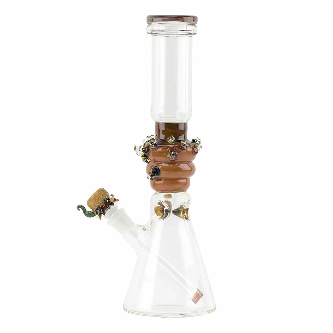 Empire Glasswork’s water pipes are a testament to their lampwork mastery. Themed after the precious, vibrant ecosystems that make our earth unique, each one perfectly depicts and emphasizes the conservation of a specific at risk habitat or endangered species. The save the bee’s beaker combines simplistic function with inspiring artistry. It features an adorable honeycomb beehive neck slathered in honey, surrounded by a platoon of buzzing bees as they navigate a labyrinth of waterways to provide you the smoothest, sweetest, smoking experience. It’s sure to become a flagship addition to any collection!