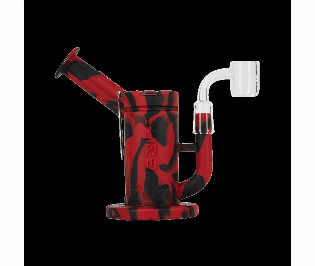 A heavy-duty glass quartz banger is easily removable and simple to clean. An adjustable neck allows the user to have a personalized experience with every hit. The lid doubles as a built-in concentrate container which is great for on-the-go storage. The base has four tool slots, making it easy to prepare your session.