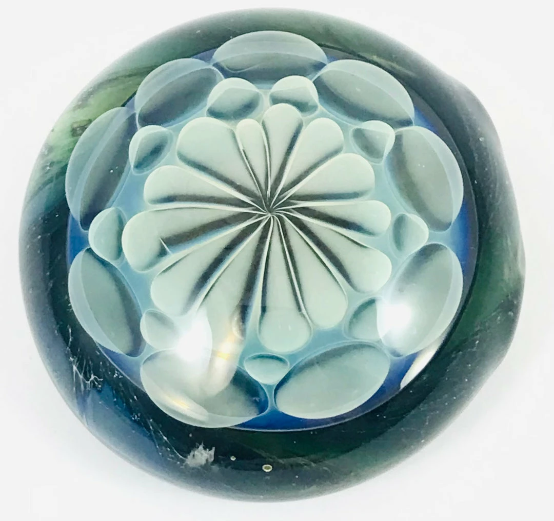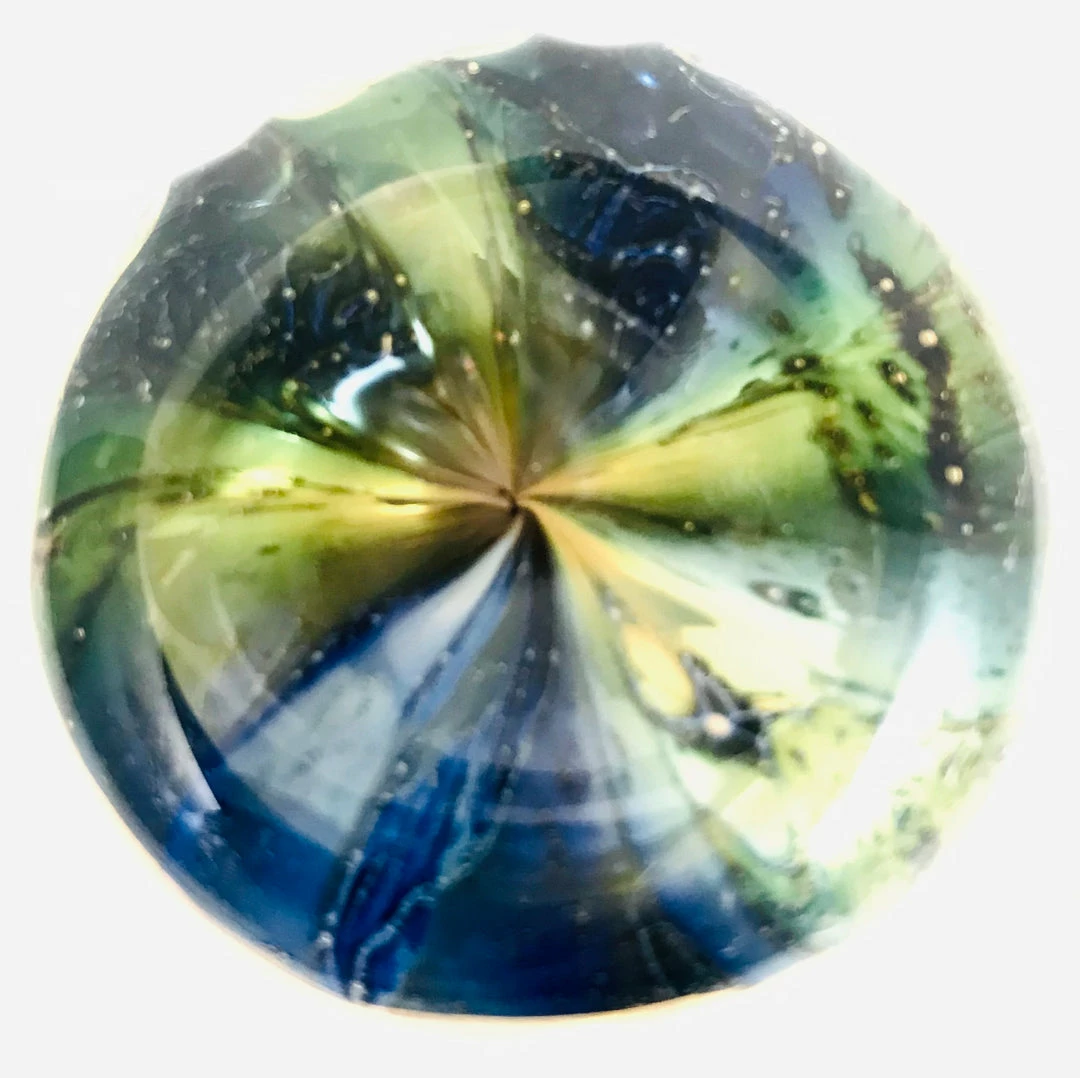ย This pendant was made locally by none other than Hippo Glass and features a whole lot of silver and gold fumed right into the glass to give it a mesmerising shine, unique at every angle the light hits it. Great piece to add to any connosieurs collection!