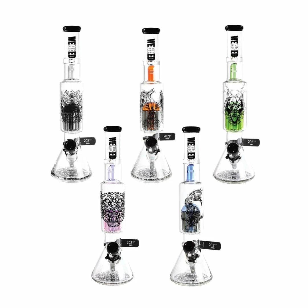 18″ Tall Beasts of East Tree Perc Beaker Bongs by WENEED Features: