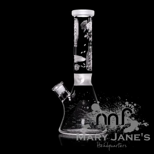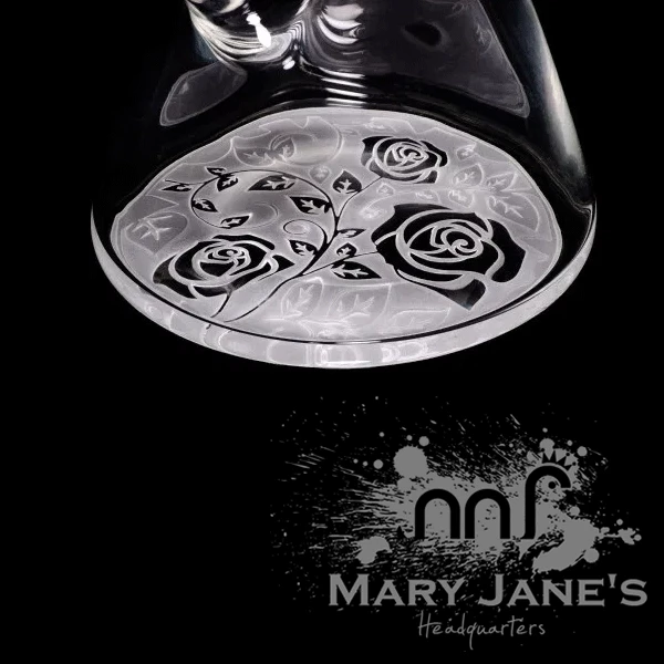 Anything can grow in the right conditions, including roses from unspecified dark potionsโฆ This 14โ beaker bong walks poetic lines in its depictions of deeply sandblasted roses on the tube and base.