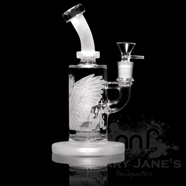 Milkyway Glass sandblasted dab rig featuring a beautiful phoenix as well as a 14mm herb bowl.Β