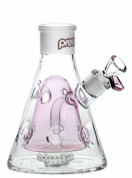 Preemo DIY beaker base features a showerhead perc to a Swiss perc. This water pipe is 7mm thick with 9 holes creating more contact with the surface area between the two layers of glass. Start your bong right with the ultimate base that will impress.