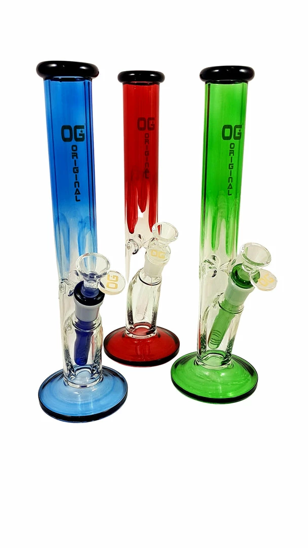 These 10″ straight tube bongs from OG Glass feature a beautiful colored drip top and are 7mm thick.Β