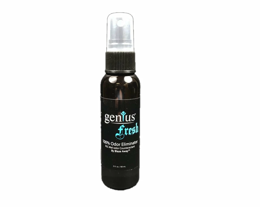 Genius Fresh is an odor-busting miracle product that removes unpleasant smells and leaves a fresh pleasing scent. It does not mask the smell, it destroys it on the molecular level. With one application, odors are gone forever. Whether you are in your car, hotel room, basement, or office – Genius Fresh is guaranteed to remove the unwanted smells and odors in UNDER 15 SECONDS! DO NOT spray on leather, vinyl, wood, plastic, or painted surfaces. Slippery on bare floors, clean up over-spray. Made from cosmetic grade fragrance ingredients. Based on Oil, XLC Mal-odor counteractant.