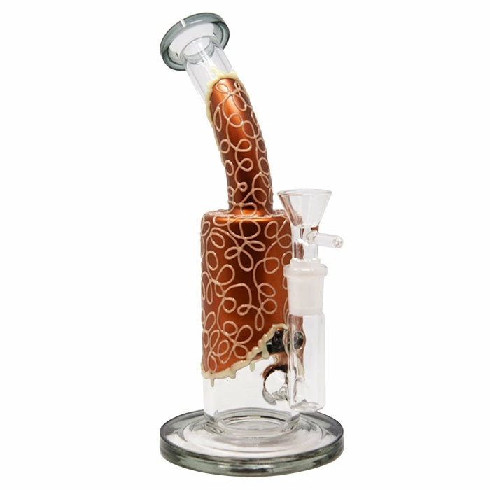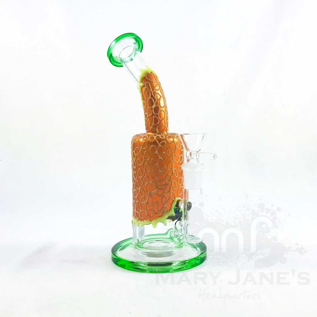 Get your honey fix with these 9″ tall Copper Dripping Bongs. Featuring a honeycomb perc and….did we mention they glow in the the dark! Comes with 14mm flower bowl. Banger not included.