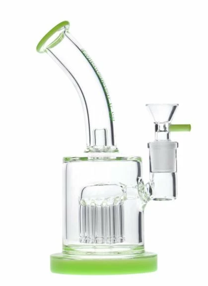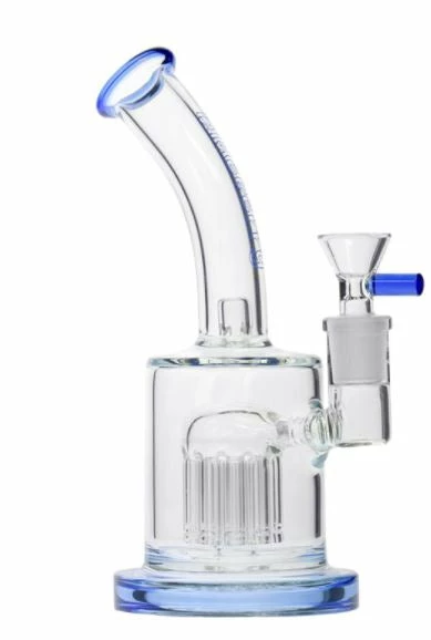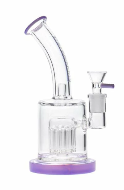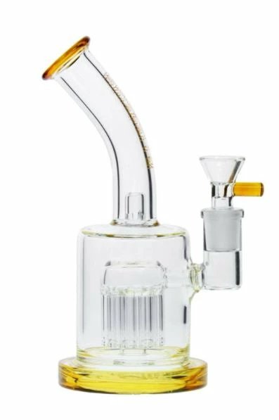 This cute bubbler features a tree percolator with 10 arms and a splash guard at the base of the tube to prevent water from exiting the mouthpiece. Although it is a small handy little piece, it is packed full of filtration. Watch all the aeration take place to give you a toke smooth as a baby’s bottom. It is equipped with a narrow handle flower bowl.