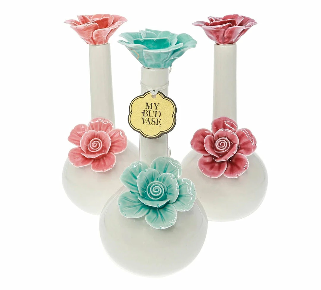 Rachel:ย This is a perfectly-shaped pink porcelain vase with delicate white relief flowers that are as beautiful as they are functional. The pale pink paper rosebuds add the perfect amount of sophistication. Monica will highlight any room’s decor. The right gift to share with your closest friends!