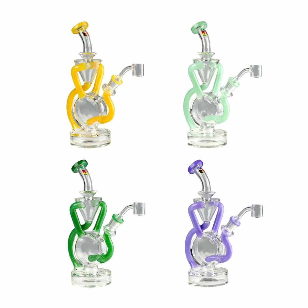 As beautiful as it is unique and functional…this Red Eye Glass 9″ Tall Cumulus Double Concentrate Recycler’s the perfect addition to any experienced dabbers collection!