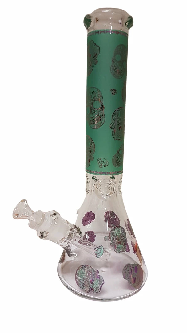Celebrate your spooky side with these Day of the Dead 7mm thick beaker bongs.