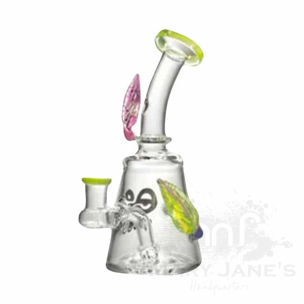 Another banging custom oil-can style Cheech Glass has spun up! Classic beaker bong style base and some beautiful coloured leaves to add some extra flare.Β This is the perfect little dab rig or bubbler.