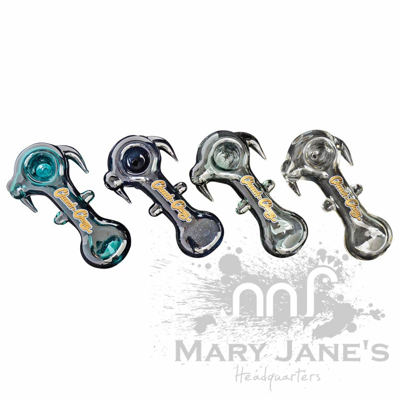These slick dual-horned glass hand pipes from Cheech & Chong not only have thick glass but they also have a nicely flattened ass so they won’t tip over during the packing process!
