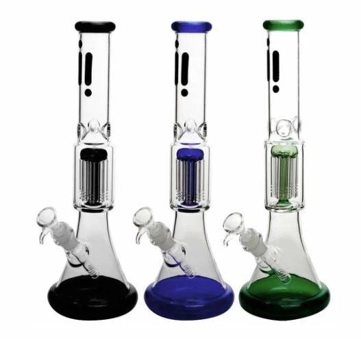 This glass water pipe is 14 inches tall, with a 14mm female joint. Featuring the Infyniti logo and colour accents on the base, tree perc and mouthpiece. This beaker base has a built-in 3-pinch ice catcher and the 8-arm percolator filters the bong smoke which makes for cooler, smoother hits. Includes a glass herb slide and removable downstem.
