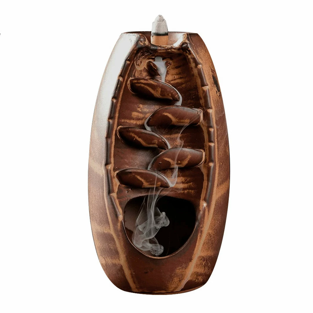 Sit back, relax, and enjoy the view of pleasantly scented incense smoke flowing down this beautiful Ceramic Waterfall Backflow Incense Burner. This unique ceramic waterfall sculpture magically releases smoky incense down its falls instead of water.