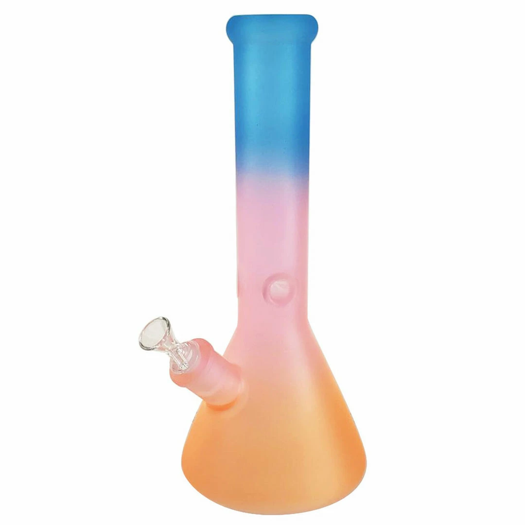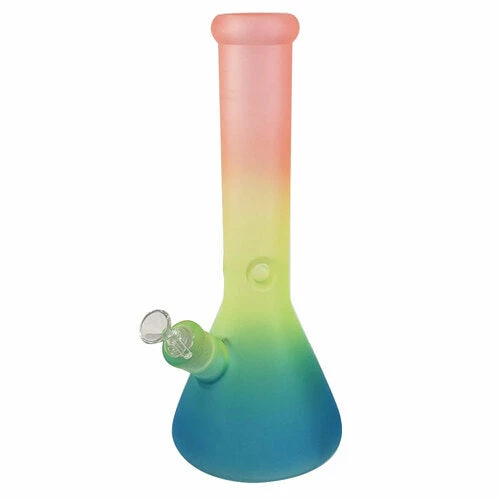 These Multi Colour Beaker Bong stand 13 inches tall and features frosted multi colours. These beakers have a built-in 3-pinch ice catcher which makes for cooler, smoother hits. Includes a matching 14mm glass herb slide and removable downstem. Sold in assorted colours that may vary from images.