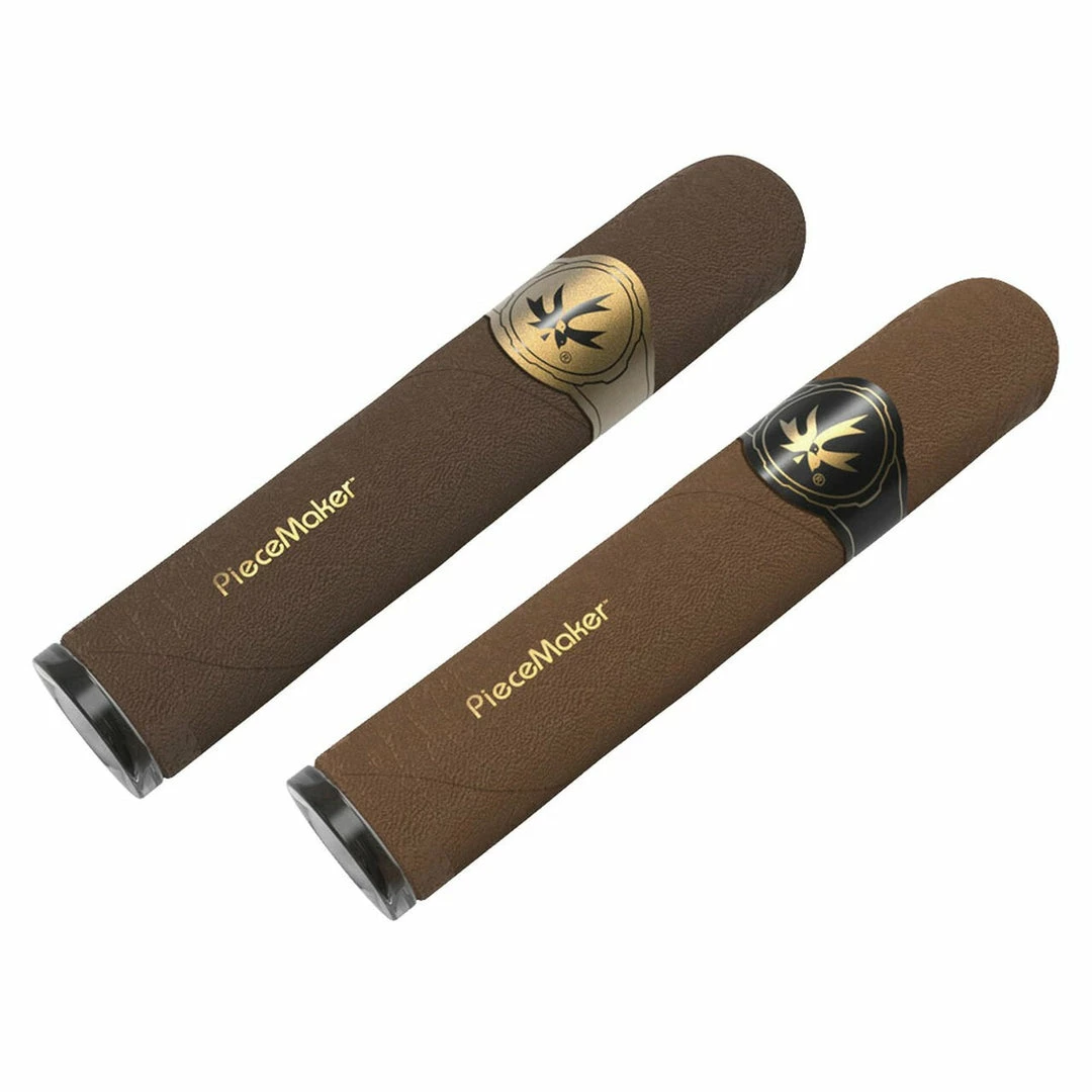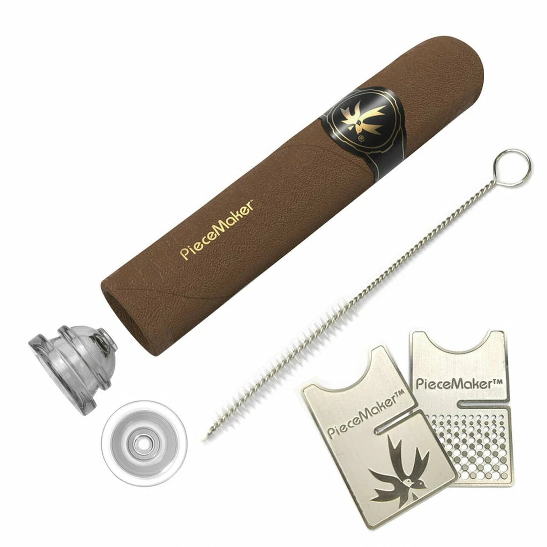 Perfect for on the go, theย PieceMaker Kuban is a silicone hand pipe that resembles a cigar. Featuring aย peel off cigar label these pipes are virtually indestructible and ready to go for your next adventure. The Kuban include a removable glass bowl, a grinder card which doubles as a cigar stand, and a cleaning tool.