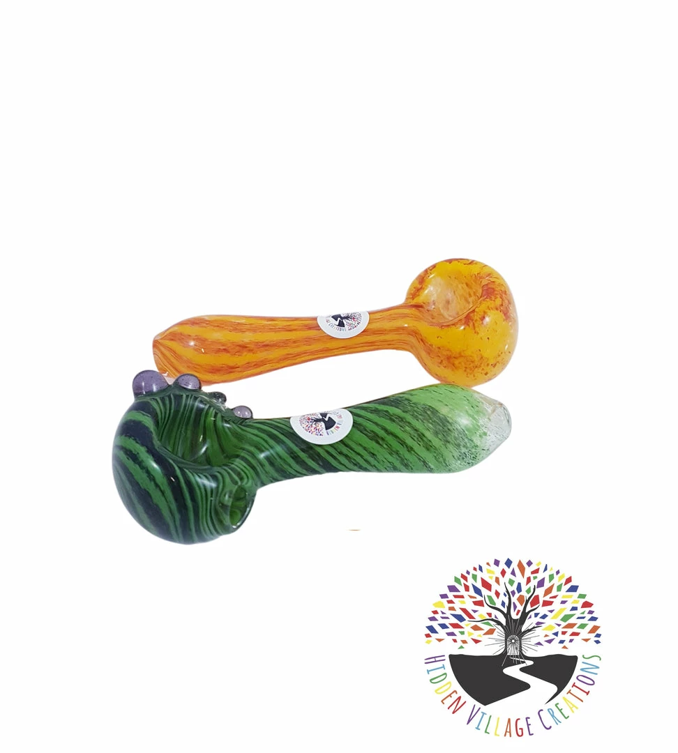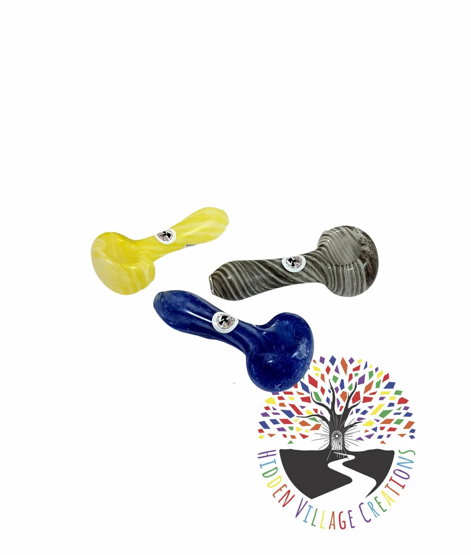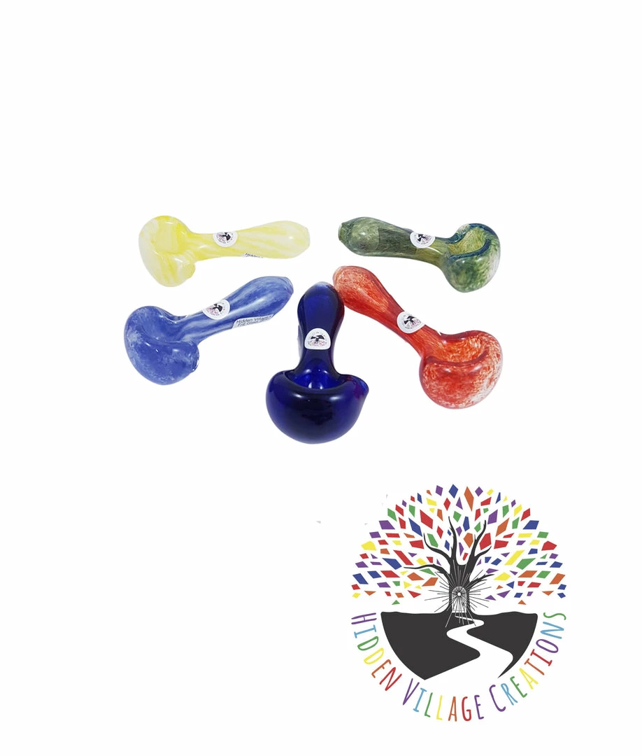 These Frit Glass pipes from Hidden Village Creations come in a vast array of beautiful colors and patterns and are one of our top sellers as they are done in a shock resistant style.