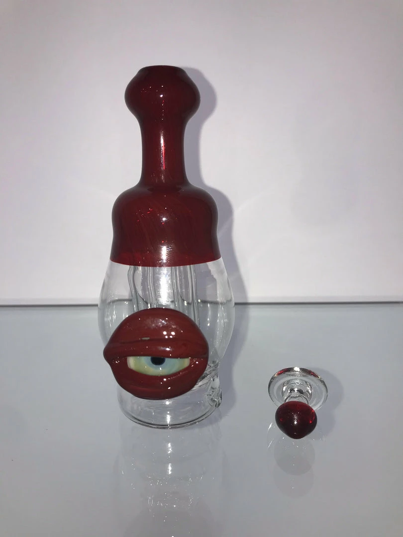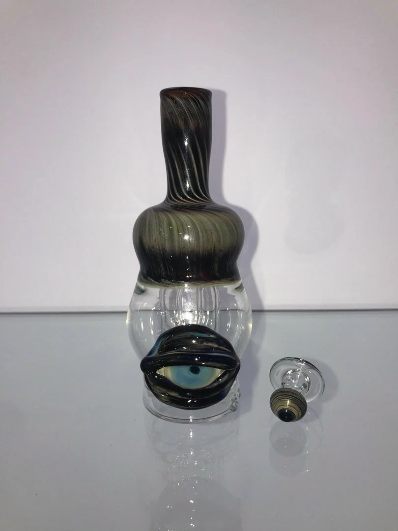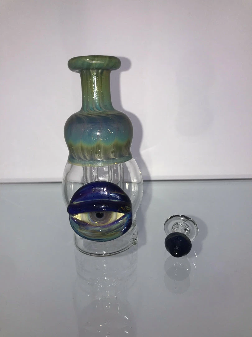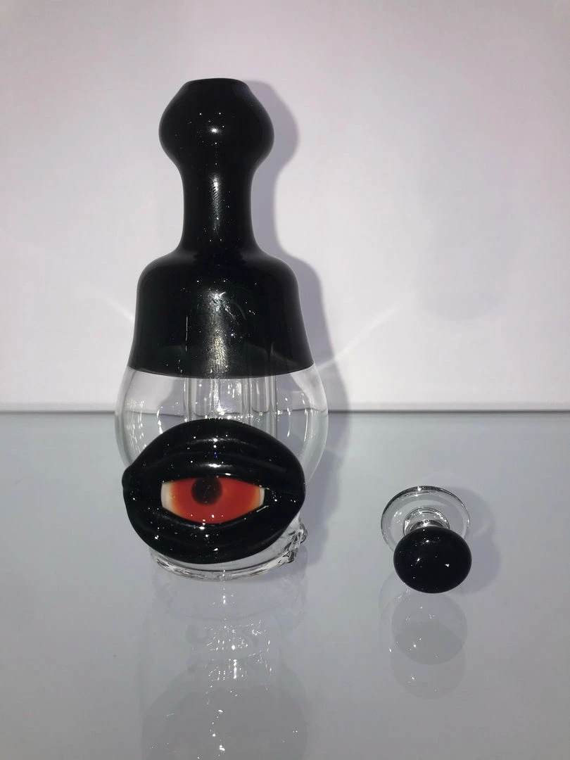 These Beautiful Puffco Peak glass tops by Mindblowing Glass are the perfect addition to any set up! Flick off the lights and make your friends jealous by pulling out the Puffco with the UV reactive glass top, or see into some ones soul when you throw on one of the eyeball tops! All of these tops come with a matching carb cap Fits both the Original Puffco Peak and the Puffco Peak Pro as well!