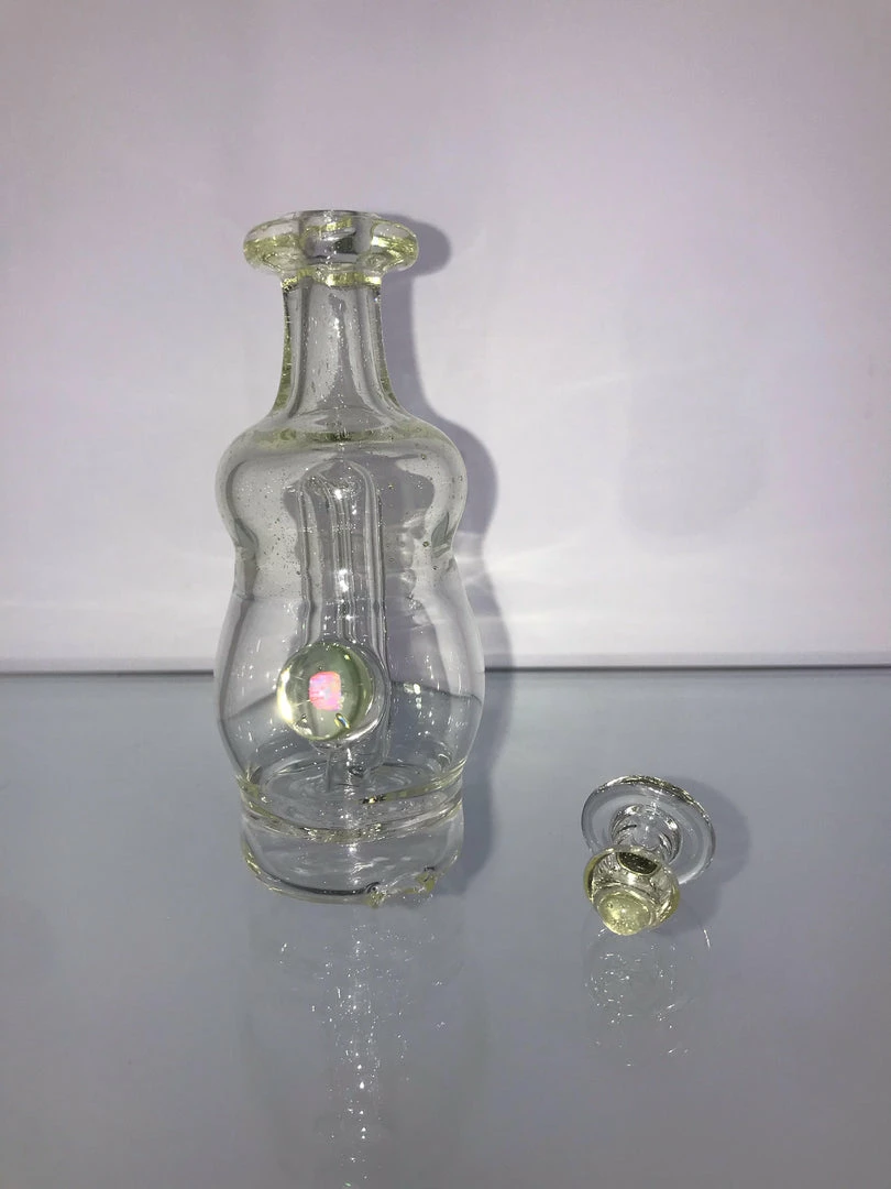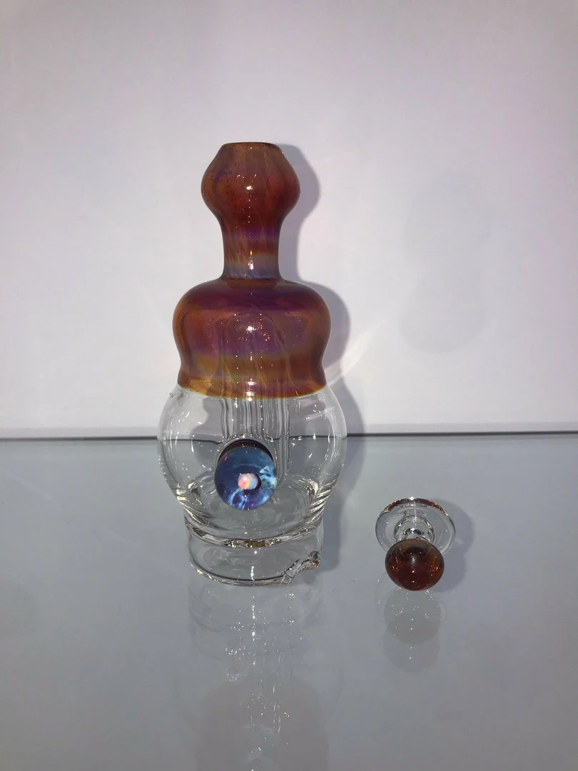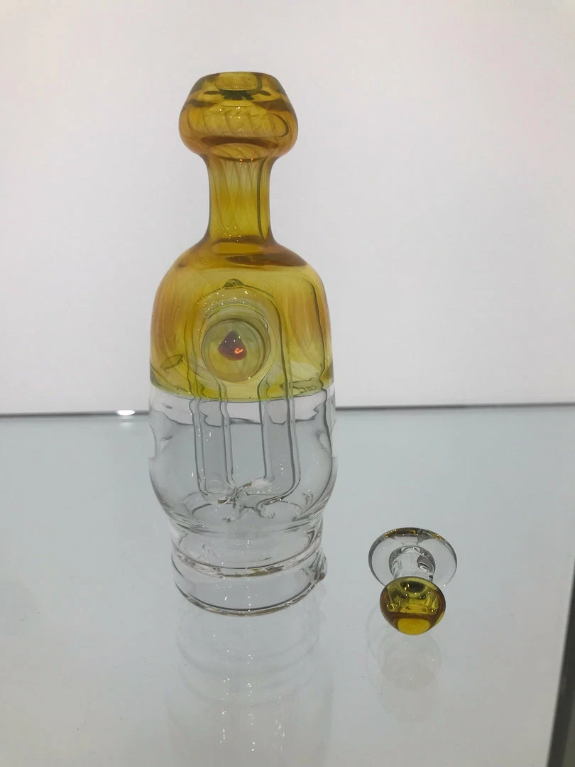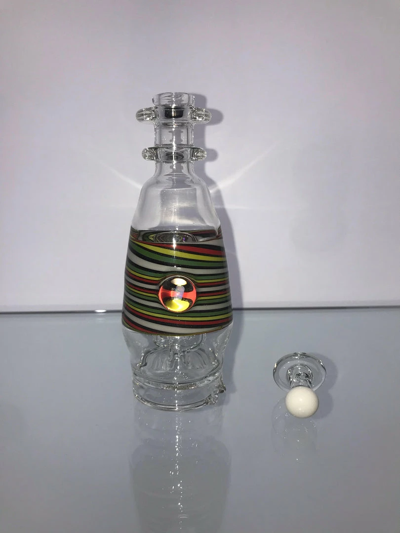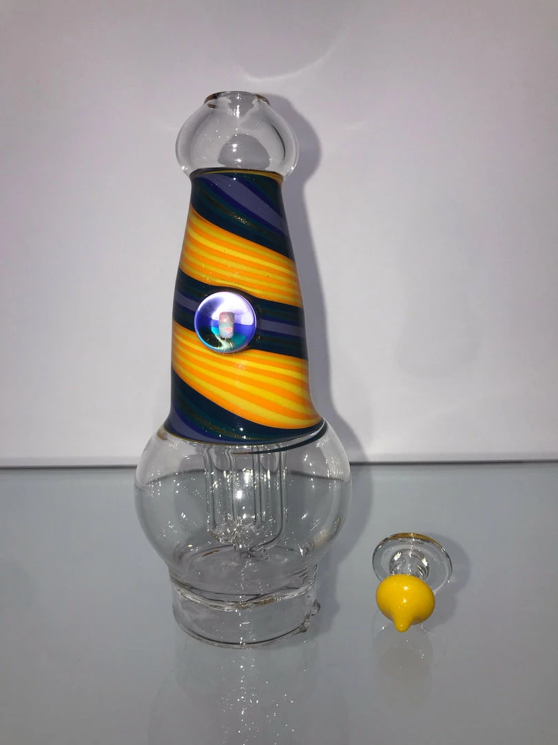 These Beautiful Puffco Peak glass tops by Mindblowing Glass are the perfect addition to any set up! Flick off the lights and make your friends jealous by pulling out the Puffco with the UV reactive glass top, or see into some ones soul when you throw on one of the eyeball tops! All of these tops come with a matching carb cap Fits both the Original Puffco Peak and the Puffco Peak Pro as well!