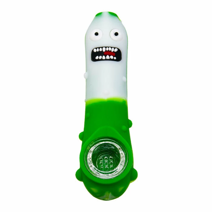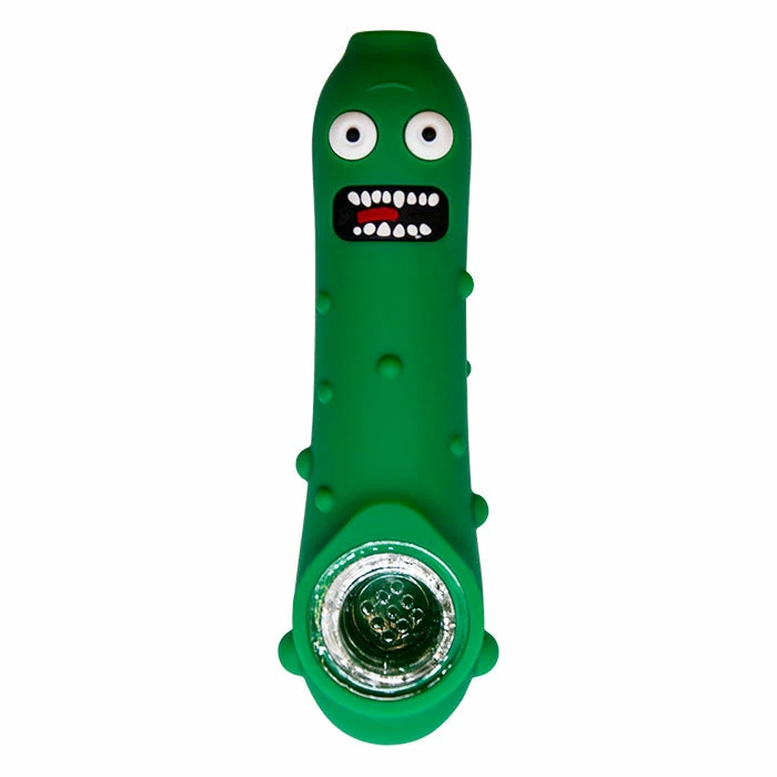Siliconeย Pickleย Pipes with a Smiley Face and Glass Bowl.ย