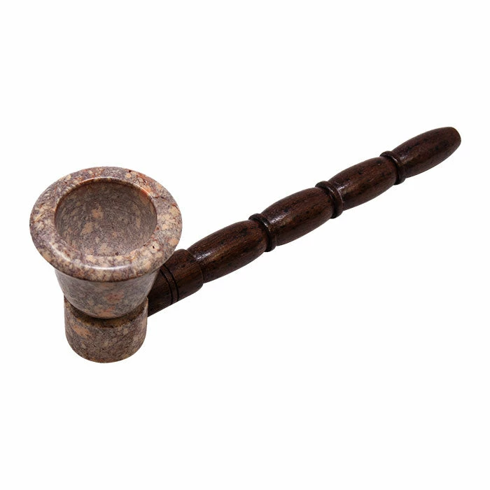 This is a Wood Pipe With Light Color Stone Bowl.