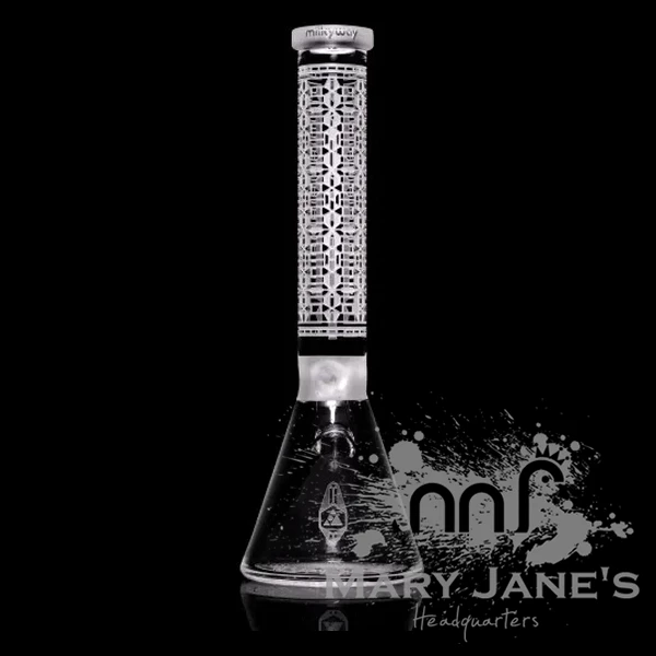 These beautiful beaker bongs made by Milkyway Glass have a sleek, stylish look to them that will be a center piece for sure! Not only are they incredibly good looking, they are also 9 mm thick! All of they’re designs are etched in and frosted so they will never wash off!ย