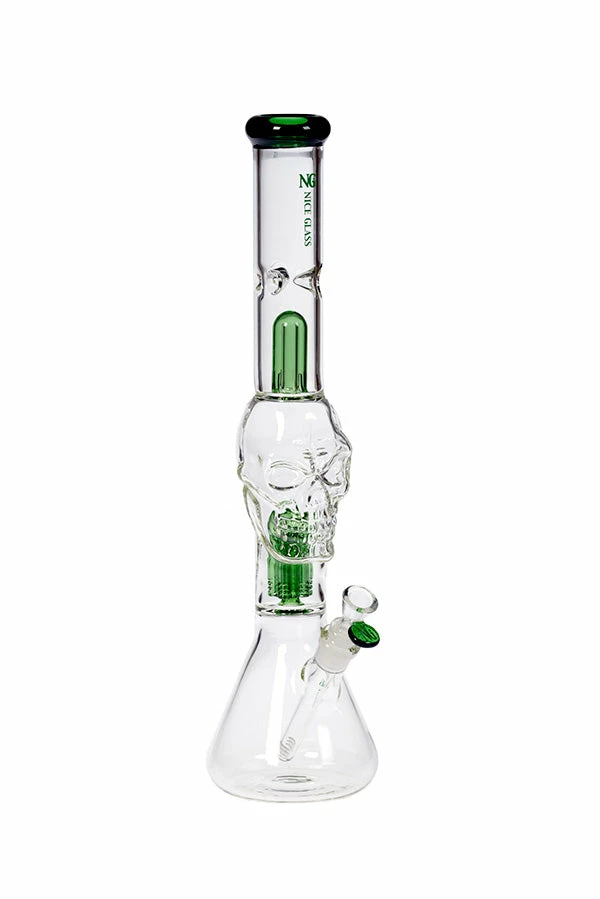 An amazing art piece featuring a skull head making up the middle chamber which holds a 6-arm tree percolator. Comes equipped with a dome percolator which also acts as a splash guard, honeycomb herb bowl, ice notches and diffuser downstem. Impress your sesh buddies with this sick Nice Glass.