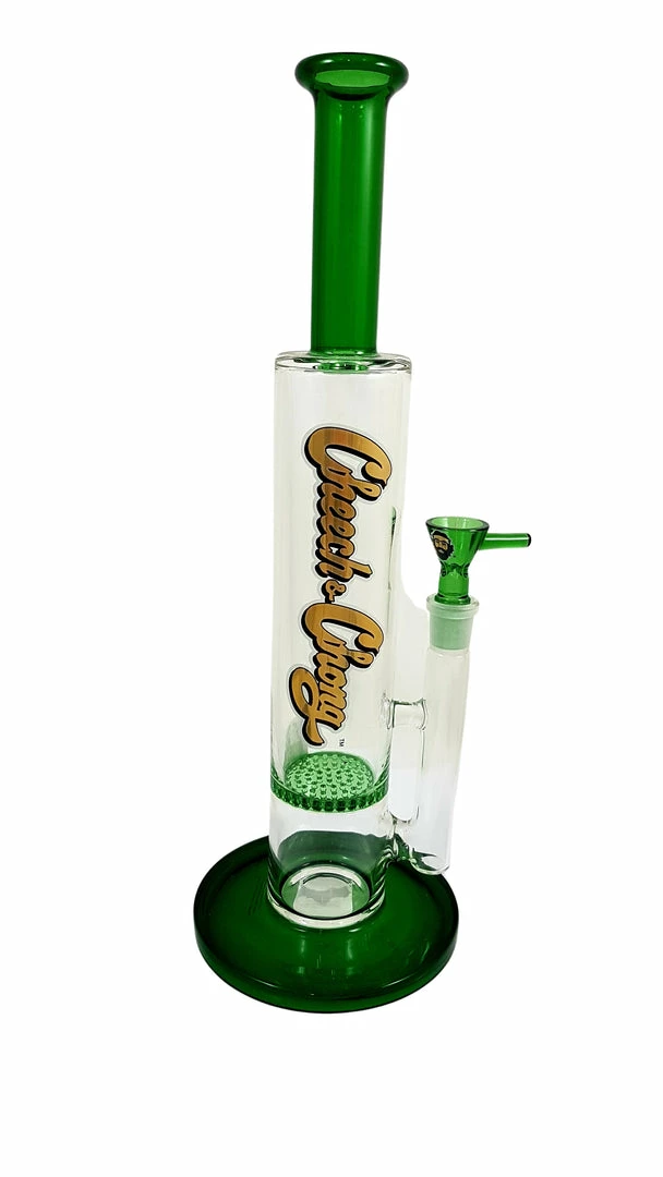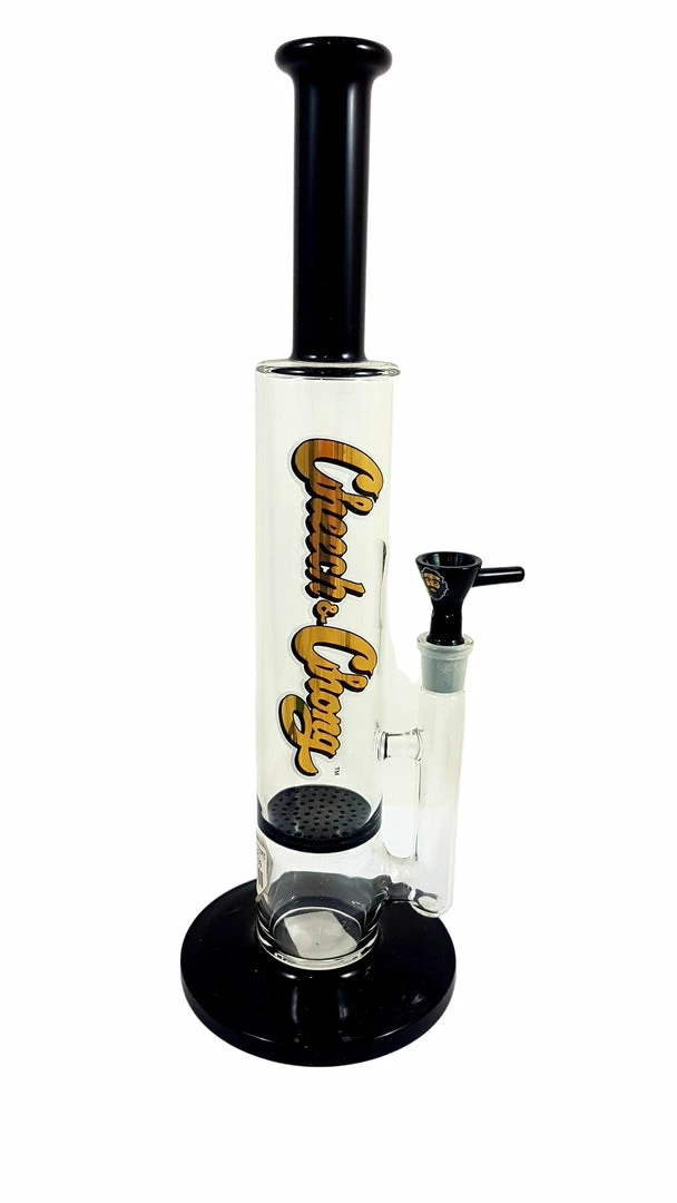 These 14″ Tall Cheech & Chong Margaret Straight Tubes feature a honeycomb perc and that classic Cheech & Chong style and color.