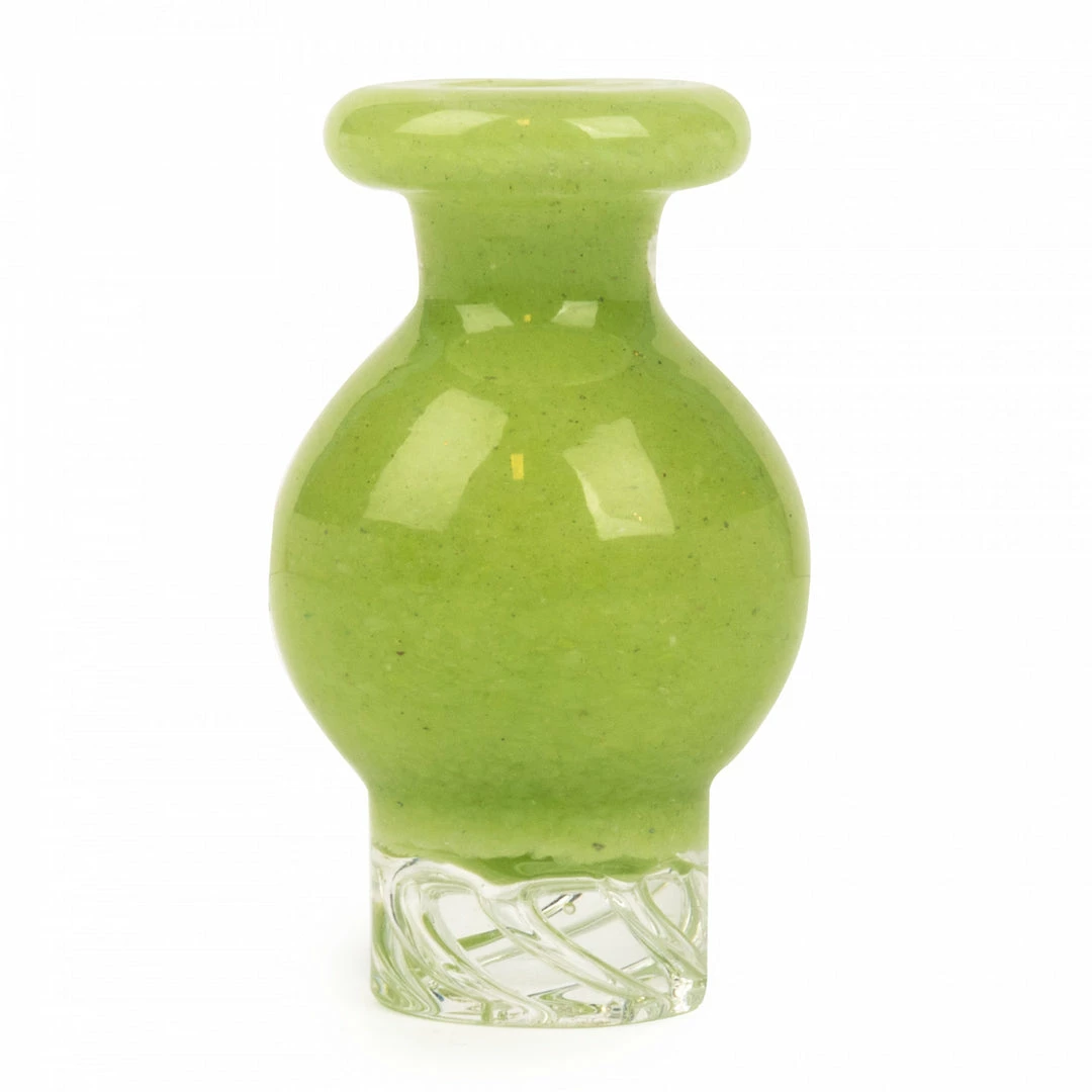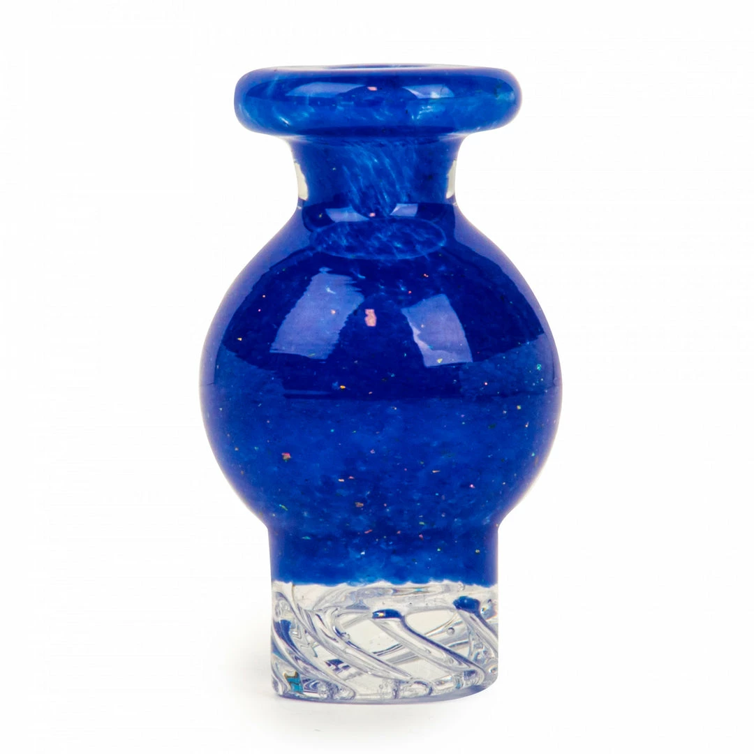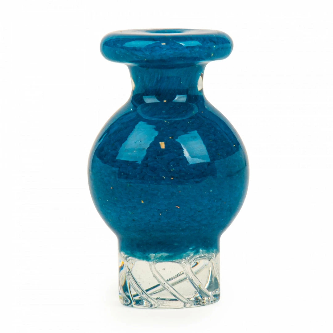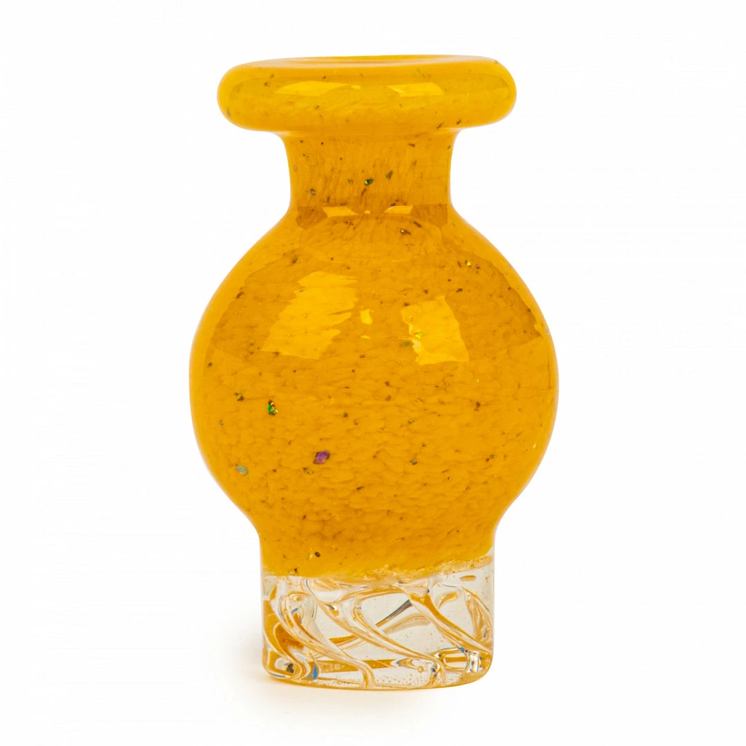 Fritted bubble caps made for flat top quartz bangers made out of 100% borosilicate and comes in blue, green, orange, purple and yellow.