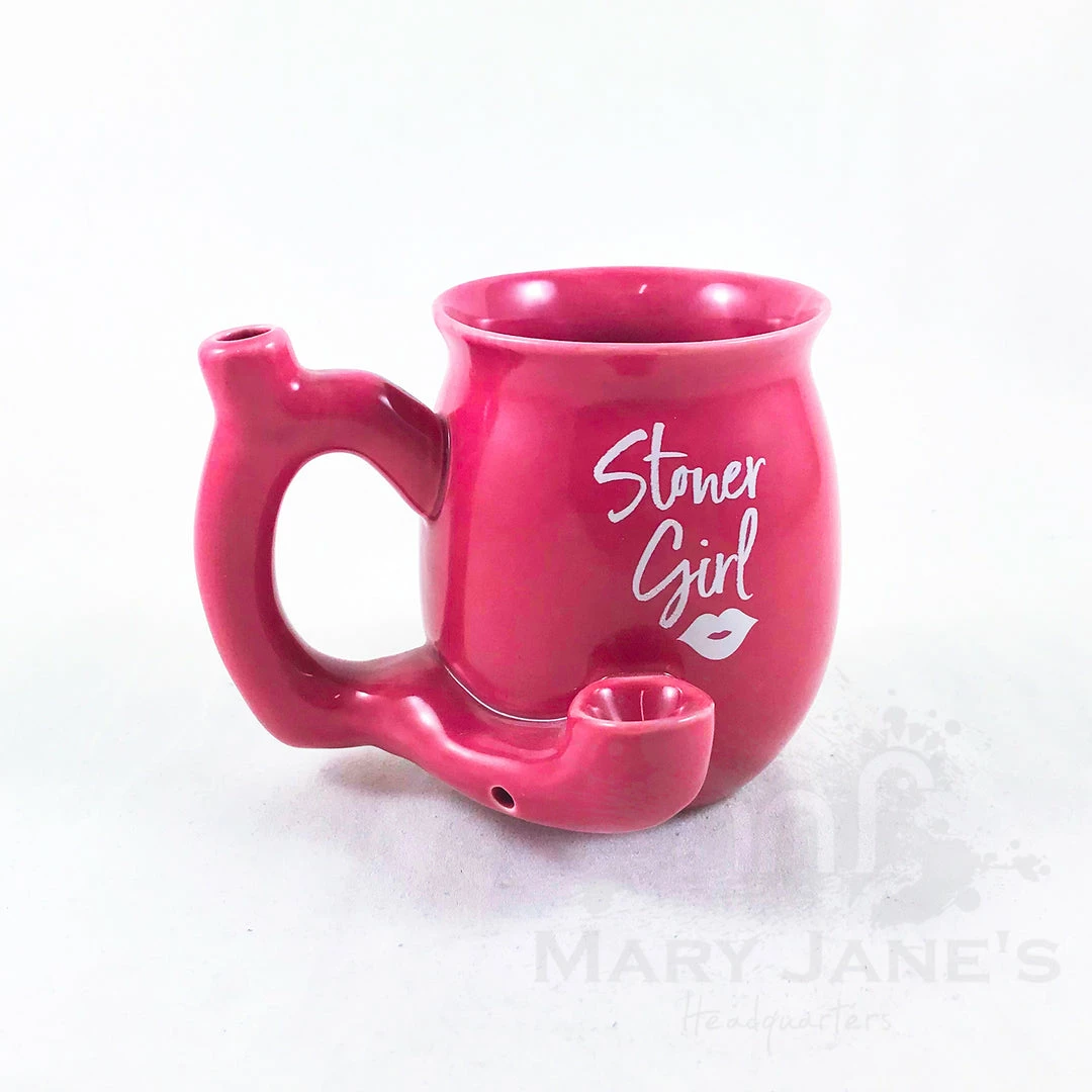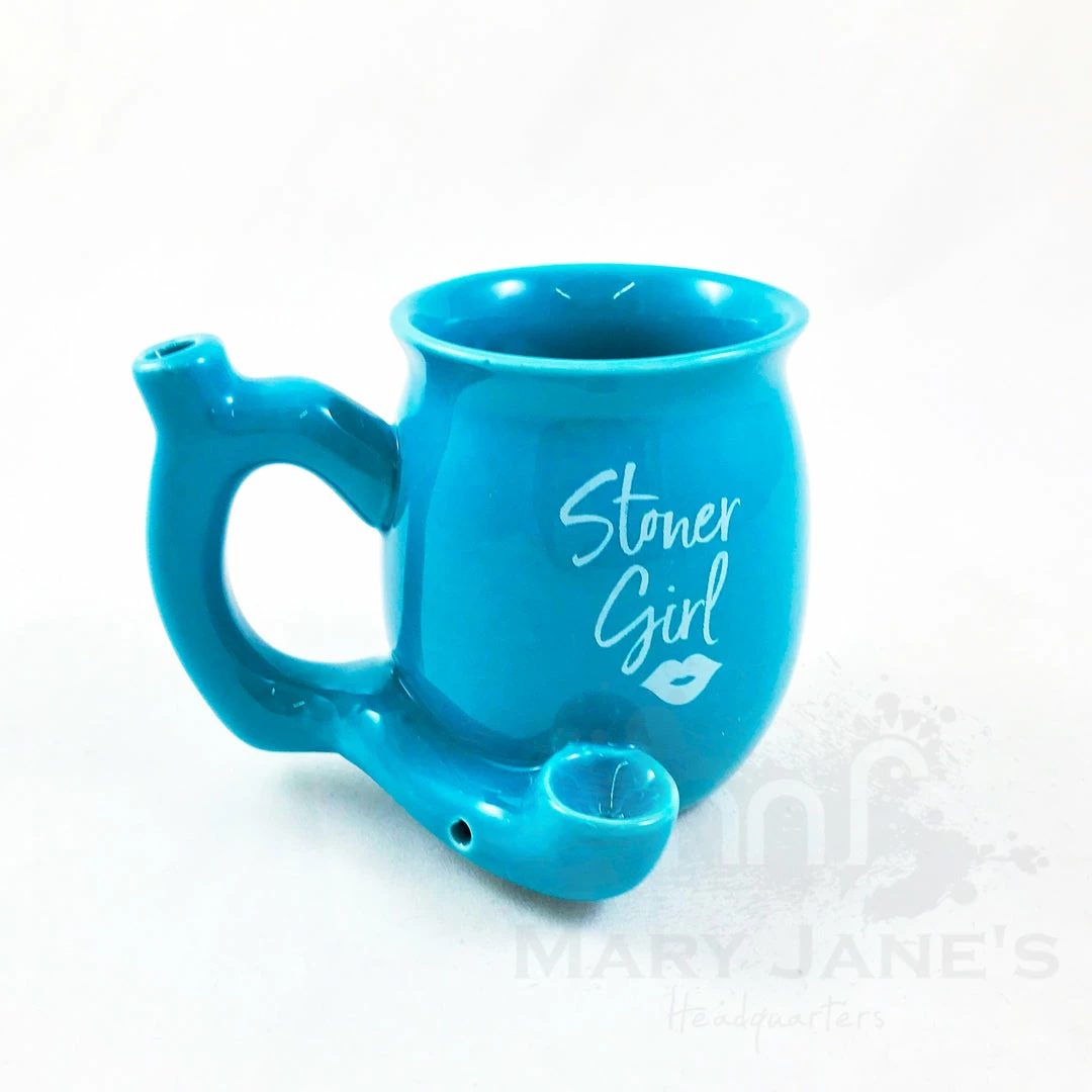 This fun and trendy novelty mug is made of ceramic and holds around 11oz of your favorite blend. Attached to the front of the mug is a pipe where you can pack your smoking herbs and light it. The smoke filters up the hollow handle to the mouthpiece on the top, allowing you to enjoy a smoke with your steaming coffee.