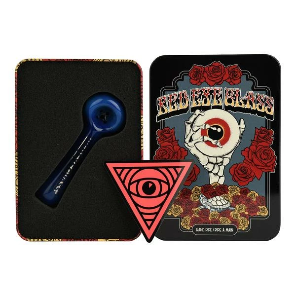 Outlet ๐งจ West Coast Gifts Red Eye Glass 4.5″ Hand Pipe With Built-In Screen & Ash Catcher Mouthpiece In A Collector Tin ๐
