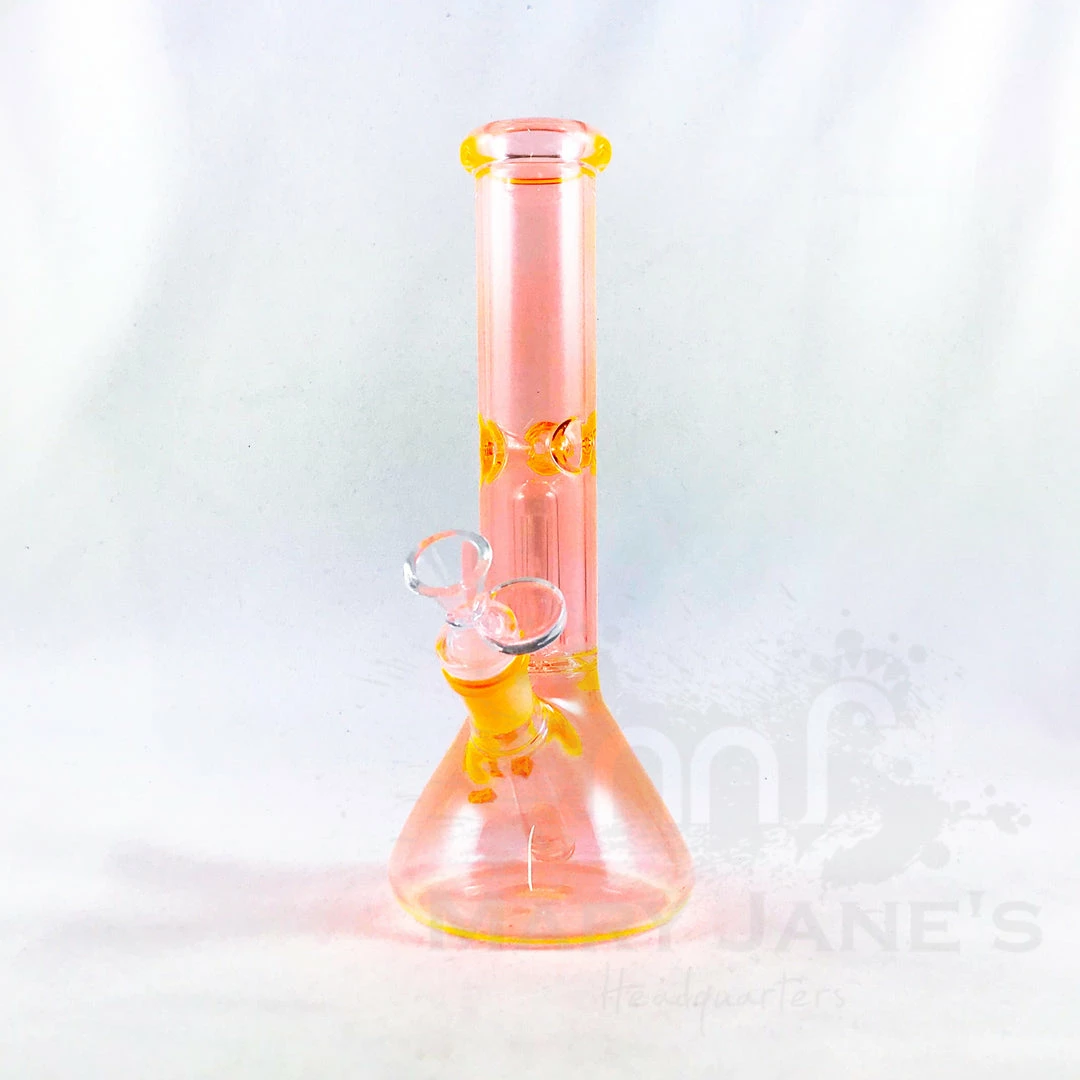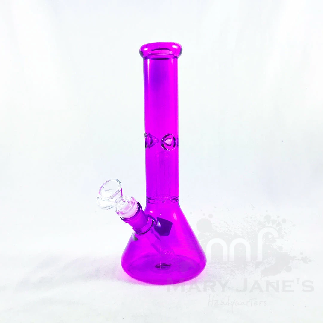 Get your Glow on with these 10″ Tall Glow Beaker Bongs. Made from 100% borosilicate glass and featuring a dome perc, these affordable little pieces offer pint-sized performance.