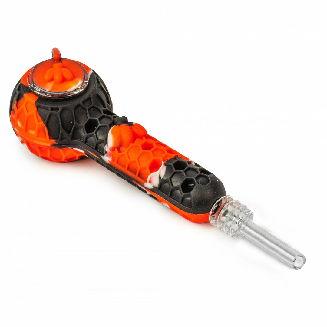 Wholesale โค๏ธ West Coast Gifts Silicone Hand Pipe 4.5″ Hand Pipe & Nectar Collector W/Glass Bowl, Quartz Tip & Bowl Cover ๐
